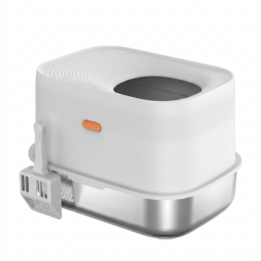 XL Top Entry Cat Litter Box with Stainless Steel Base | Easy Clean Design for Odor Control